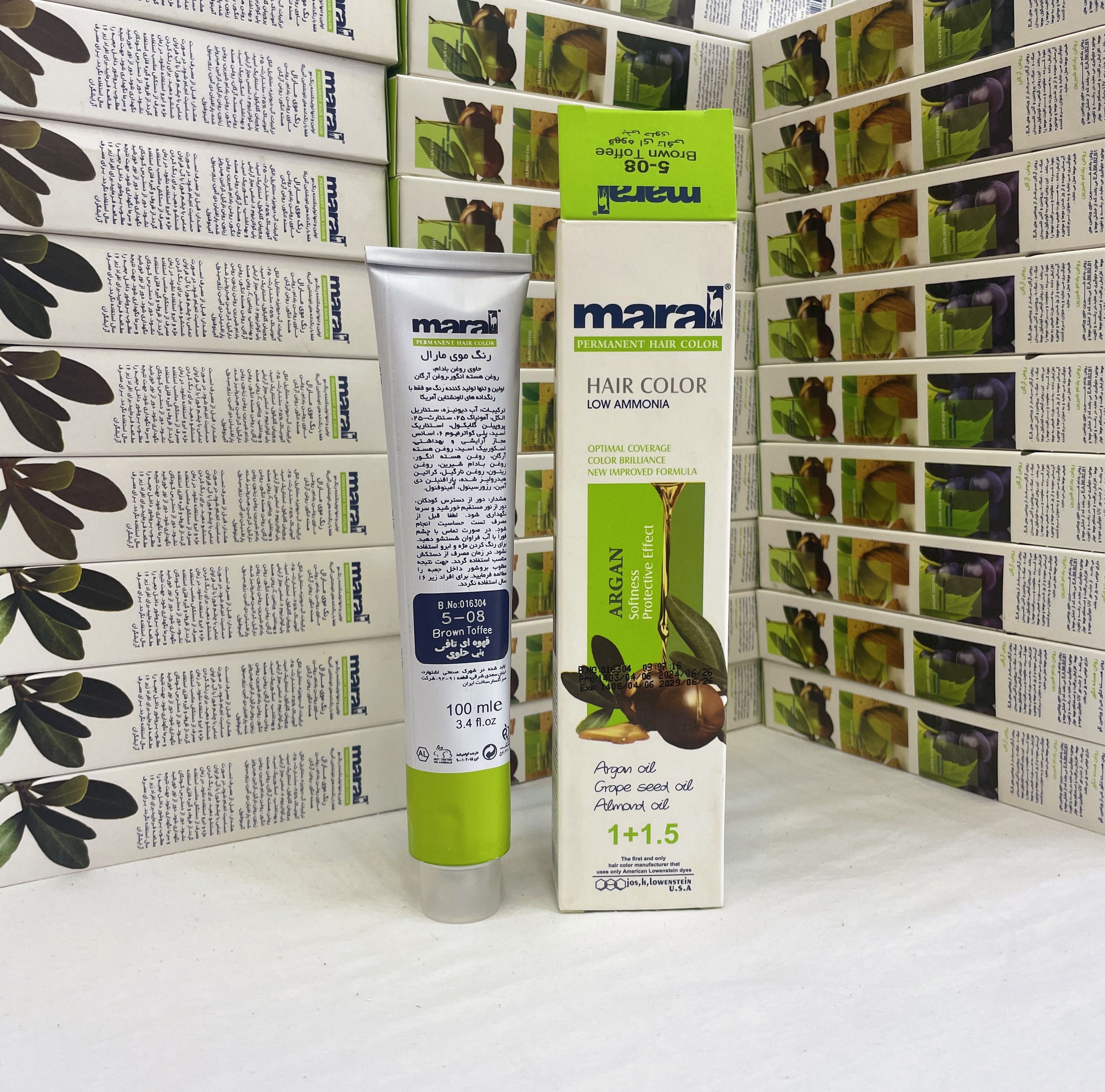 رنگ مو مارال رنگ مو دائمی است که قادر است رنگ موجود موها رو تغییر داده، تیره تر یا روشن تر کند. قدرت پوشش رنگ مو مارال برای موهای خاکستری عالی بوده و در هر شرایطی کاملا پایدار است. رنگ مو مارال حاوی روغن آرگان، روغن هسته ی انگور، روغن بادام، ویتامین، نرم کننده و حالت دهنده ی مو می باشد که باعث درخشندگی مو شده و از خشک شدن و شکنندگی مو جلوگیری می کند. حجم: ۱۰۰ میل نسبت درصد ترکیب ۱ به ۱/۵ برای رنگ مو های معمولی اکسیدان ۶ درصد و رنگ موهای روشن کننده ۱ به ۲ اکسیدان ۹ درصد مارال می باشد.